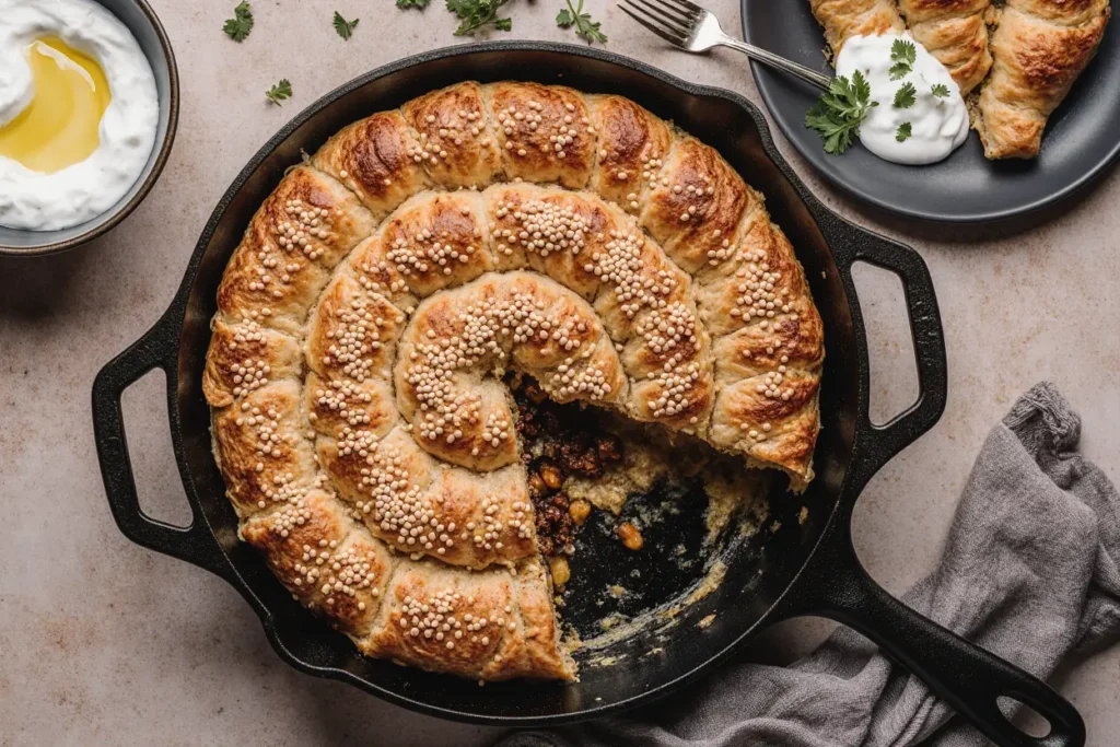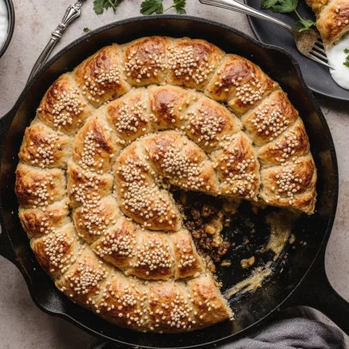 This Borek recipe delivers everything you crave in a pastry—golden, crackling layers that shatter at the first bite, revealing a warmhearted filling of perfectly spiced lamb enriched with the unexpected sweetness of currants. Each element works in harmony, from the nutty crunch of pine nuts to the aromatic blend of cumin and cinnamon that makes this dish unforgettable. Whether you’re serving it for a special celebration, weekend brunch, or simply treating yourself to homemade comfort food, this recipe provides restaurant-quality results with clear, achievable steps.