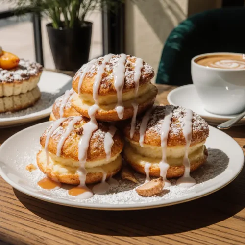 Brunch Centerpiece: Arrange beignets on a tiered stand with an assortment of toppings — crushed pistachios, shredded coconut, cocoa powder, or even a drizzle of condensed milk — and let guests customize their own.