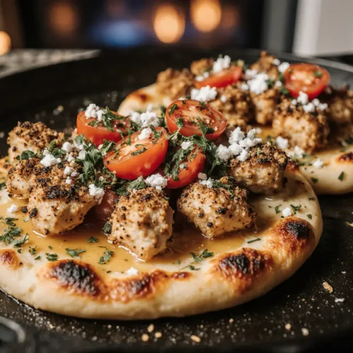 The Garlic Butter Chicken Flatbread Melt represents everything we love about home cooking: incredible flavor achieved through simple techniques, impressive presentation that belies its ease, and satisfying comfort that brings people together around the table. In just 25 minutes, you’ve created a restaurant-quality dish that delivers layers of flavor—from the aromatic garlic butter to the perfectly seasoned chicken and melted cheese—all supported by a crispy, golden flatbread base.