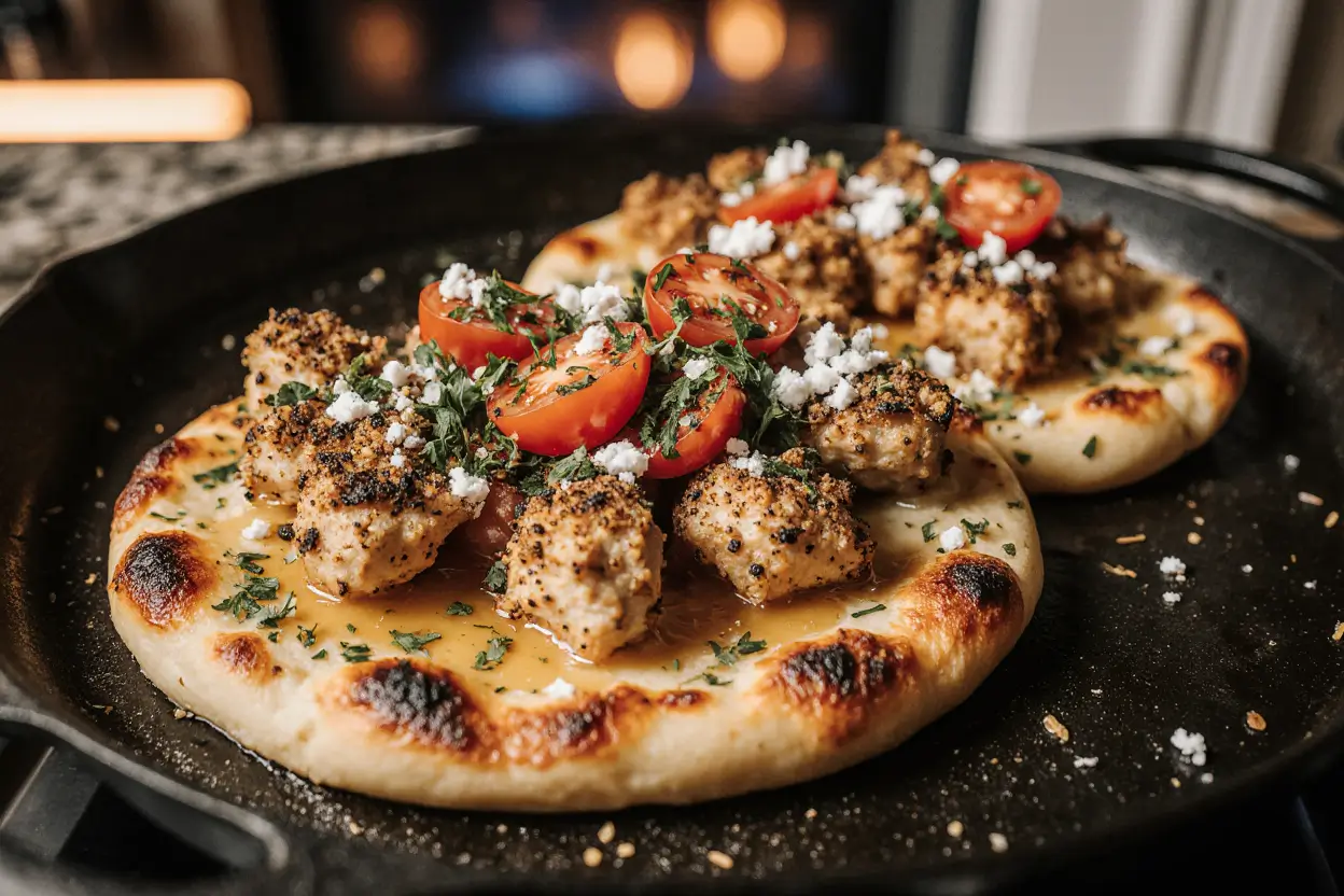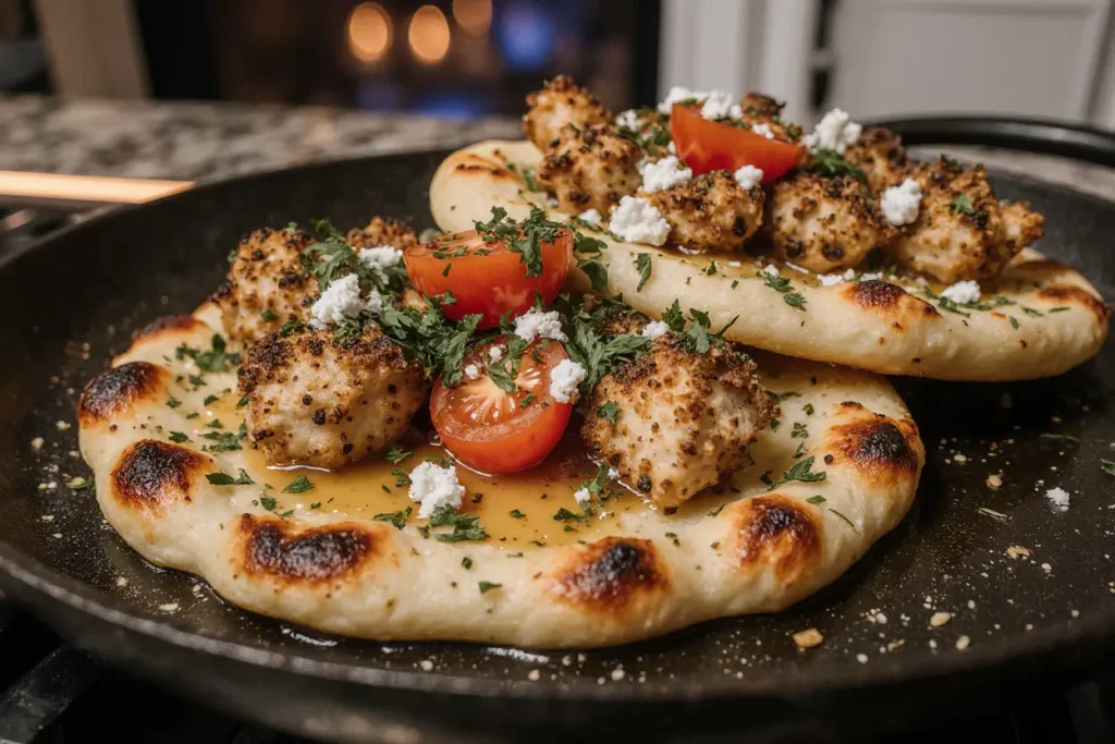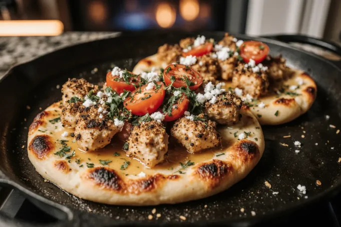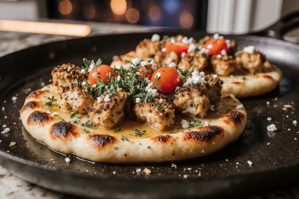 What can I substitute if I don’t have flatbread? Many alternatives work beautifully: Naan bread provides similar thickness with a slightly softer texture; pita bread offers a lighter, thinner option; large tortillas create a crispier, thinner crust; pre-made pizza dough can be rolled thin and par-baked; or even large English muffins split in half work in a pinch. For low-carb alternatives, try portobello mushroom caps, cauliflower pizza crust, or even thick slices of roasted eggplant as a base. Each alternative brings its own character while still supporting the garlic butter and chicken beautifully.