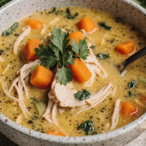 Golden turmeric chicken soup shines as a complete meal on its own, but thoughtful accompaniments can elevate the experience. Serve alongside warm, crusty whole-grain bread or sourdough for dipping—the bread’s texture contrasts beautifully with the smooth, creamy broth. For a low-carb option, pair with cauliflower rice or zucchini noodles that can be added directly to the bowl.