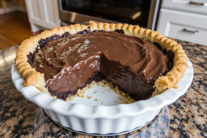 Preheat your oven to 175°C (350°F). If using store-bought pie crust, place it in a 23cm (9-inch) pie pan and crimp edges decoratively. If making homemade crust, roll it out and fit it into your pan. Prick the bottom several times with a fork to prevent bubbling. Pre-bake the crust for 10 minutes until lightly golden—this crucial step prevents a soggy bottom and creates the perfect foundation for your gooey brownie pie.