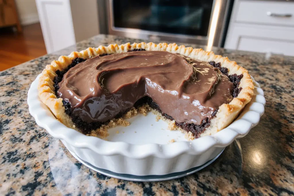 Place the pie on the middle oven rack and bake for 45-50 minutes. The goal is a set edge with a slightly jiggly center—this ensures that signature gooey texture. The top should look crackled and matte rather than shiny. Here’s the critical test: insert a toothpick 2 inches from the edge—it should come out with moist crumbs, not wet batter or completely clean.