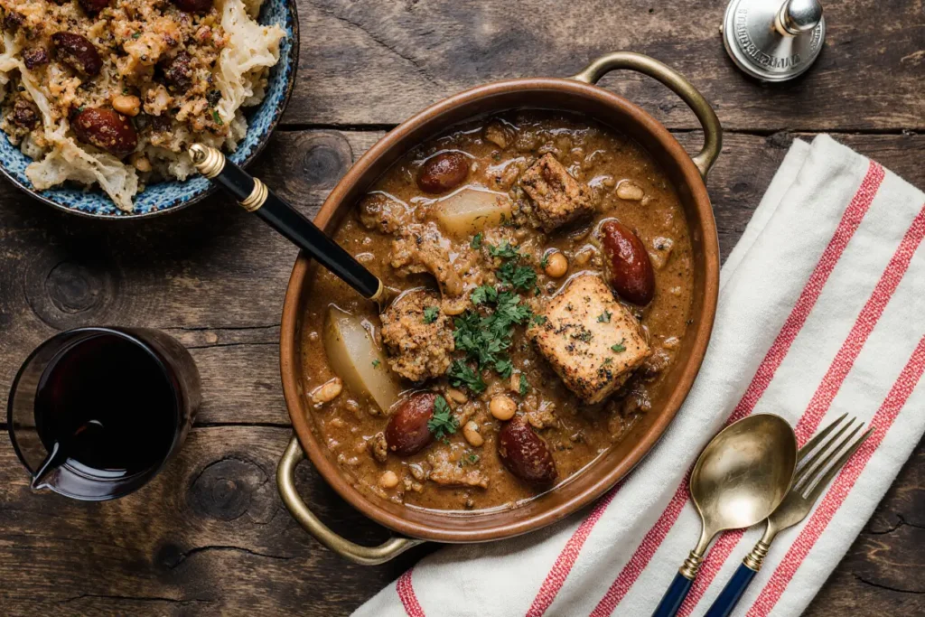 Wine pairing enthusiasts should reach for the same full-bodied red used in cooking—Cabernet Sauvignon, Merlot, or Côtes du Rhône all complement the meat’s robust flavors. For beer lovers, a malty brown ale or Belgian dubbel provides caramel notes that echo the stew’s caramelized fond.