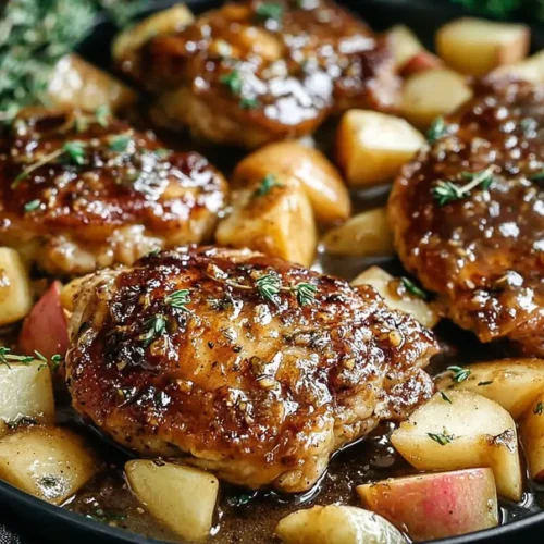 The magic of this recipe lies in the balance of flavors. Honey adds sweetness, mustard brings a gentle tang, apple cider vinegar brightens the sauce, and fresh herbs deliver an earthy aroma that ties everything together. Tender apple slices simmer alongside the chicken, soaking up the sauce while providing a subtle sweetness that complements the savory elements perfectly.