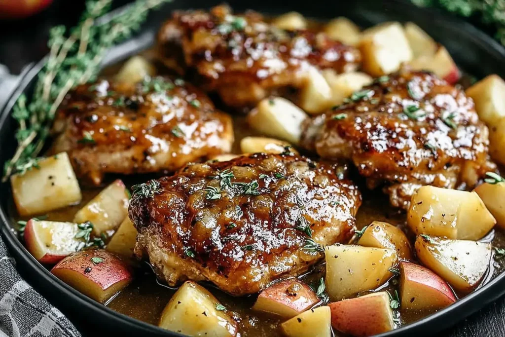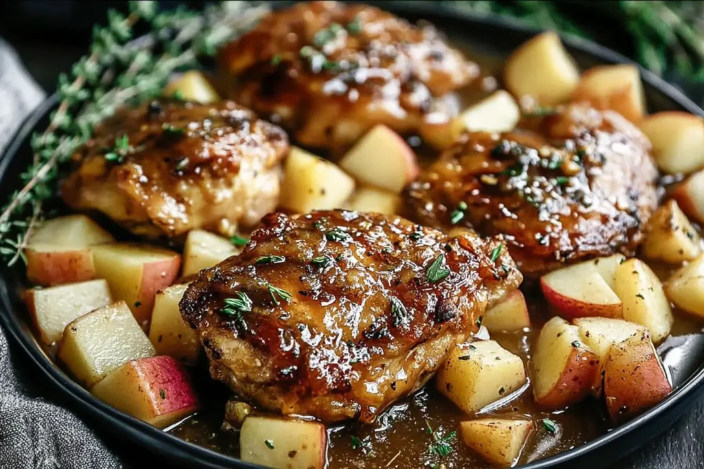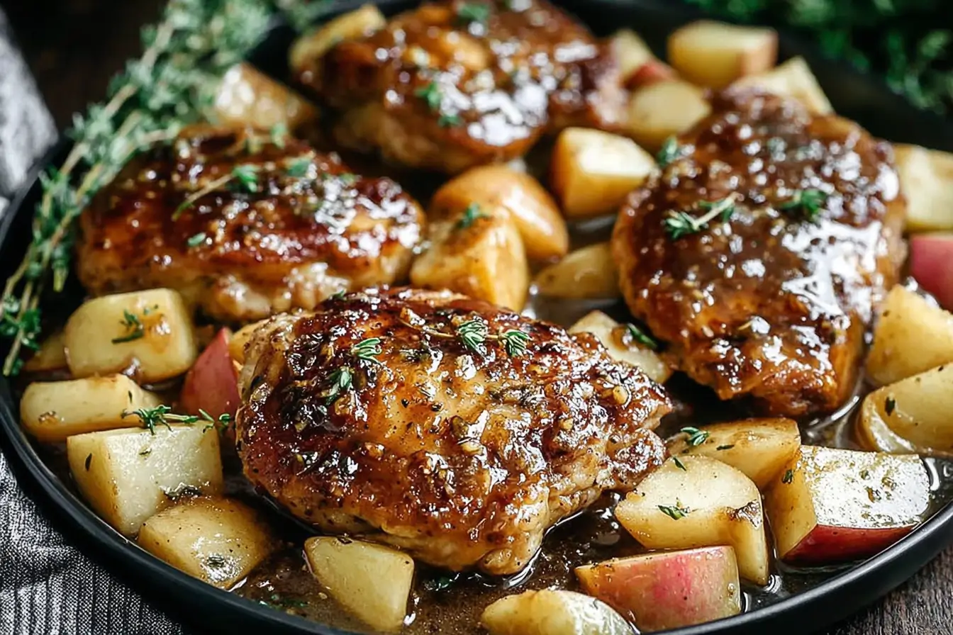Honey Mustard Apple Chicken with a Savory Twist is proof that simple ingredients can create extraordinary flavor. The sweet apples, tangy mustard, fragrant herbs, and tender chicken come together in a skillet meal that feels comforting yet elegant.