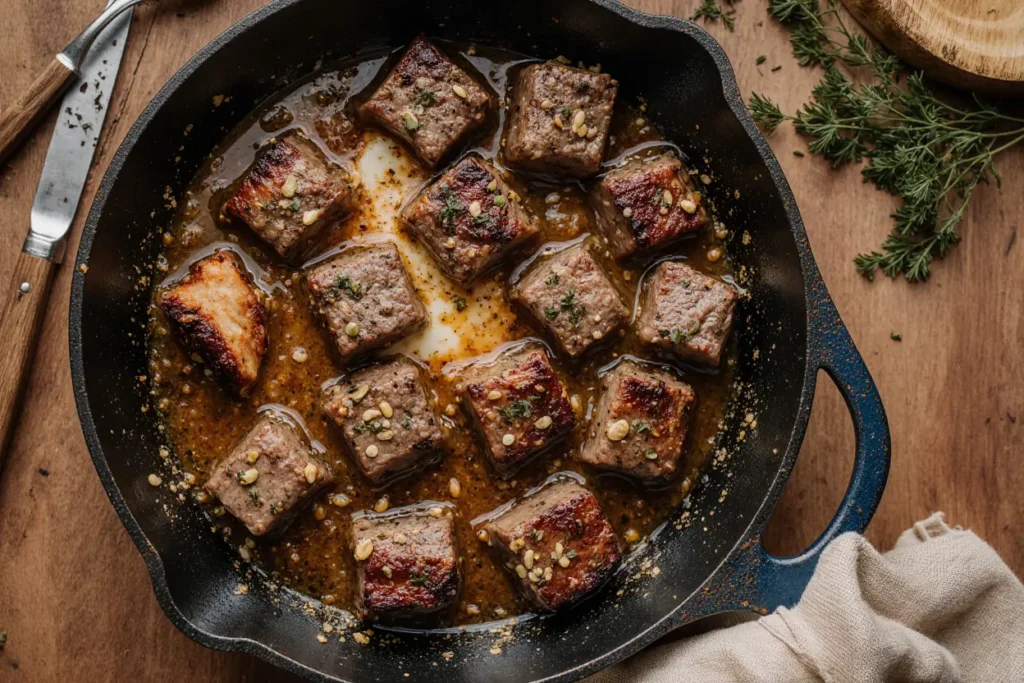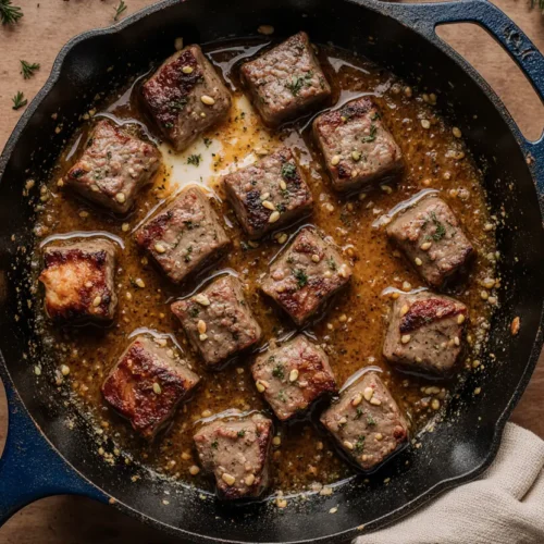 Pro Tip: Tilt the pan slightly and use a spoon to baste the melted garlic butter continuously over the steak bites. This step is where the magic happens — it coats every piece in that luscious, aromatic sauce.