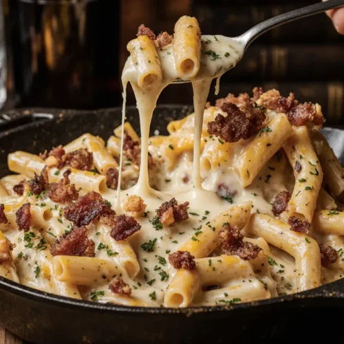 This loaded bacon cheeseburger Alfredo pasta represents the best of fusion cooking—taking beloved comfort food elements and combining them into something greater than the sum of its parts. With its perfect balance of smoky bacon, seasoned beef, tangy pickles, and luxurious cream sauce, this 35-minute recipe delivers restaurant-quality results without requiring advanced culinary skills or obscure ingredients. The versatility of this dish means you can adjust it to suit various dietary preferences, from lighter swaps to vegetarian modifications, while maintaining the core flavor profile that makes it so craveable. Whether you’re feeding a hungry family on a busy weeknight, impressing dinner guests with a creative twist on classics, or treating yourself to something indulgently satisfying, this recipe consistently delivers. Don’t wait for a special occasion—grab your ingredients tonight and discover why this mashup has become a viral sensation in kitchens across the country. Once you’ve tried it, share your experience and any creative variations you discovered in the comments below, and be sure to explore our other fusion pasta recipes for more culinary inspiration that breaks traditional boundaries.