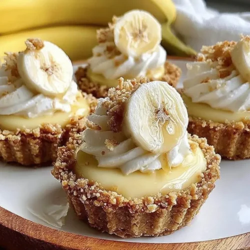 If you’re looking for a dessert that is creamy, nostalgic, easy to prepare, and guaranteed to impress, these Mini Banana Cream Dessert Pies are the perfect solution. With a buttery vanilla wafer crust, a fluffy banana cream filling, fresh banana slices, and a cloud of whipped cream on top, these bite-sized treats combine classic comfort with elegant presentation.
