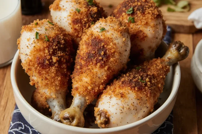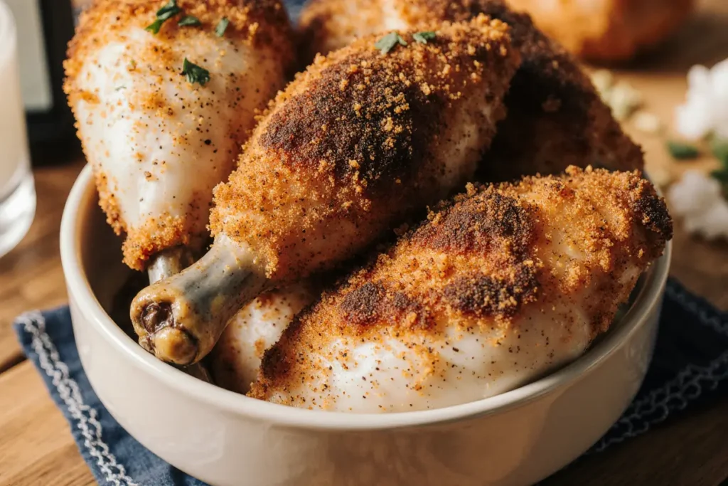 Q: Can I prepare these ahead of time for a party? A: Yes! You can marinate the chicken up to 24 hours in advance and coat them up to 4 hours before baking. Store coated chicken covered in the refrigerator, then bring to room temperature for 30 minutes before baking. Alternatively, fully cook the chicken, refrigerate, and reheat in a 375°F oven for 15-20 minutes before serving.
