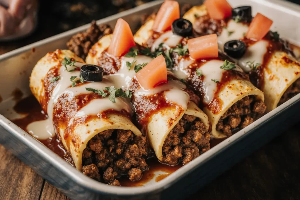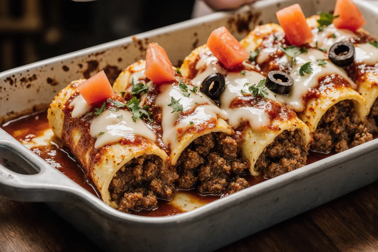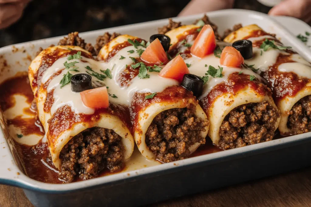 This pizza enchiladas with ground beef recipe isn’t just another fusion experiment—it’s a carefully crafted culinary masterpiece that delivers the best of both worlds. Imagine crispy tortillas rolled with seasoned ground beef, smothered in rich pizza sauce, and topped with gooey mozzarella cheese, all baked to golden perfection. This dish achieves what many thought impossible: satisfying both your pizza cravings and your love for Mexican enchiladas in one spectacular meal.