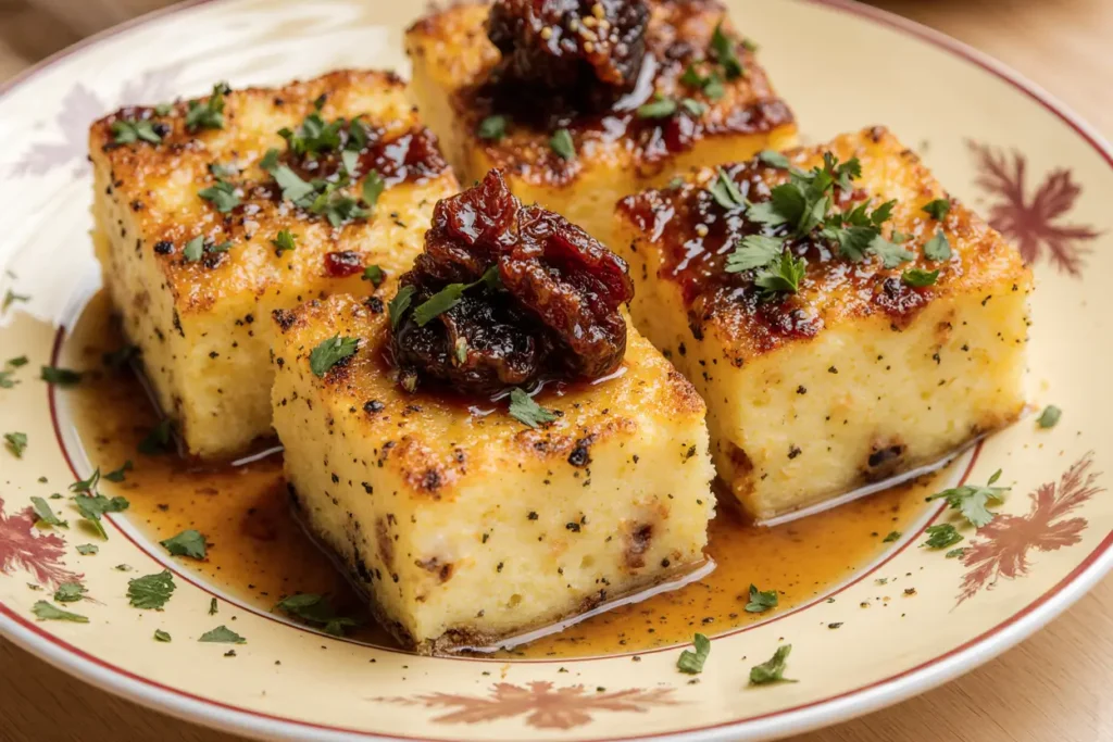 These polenta bites with herbs and sun-dried tomatoes represent the perfect marriage of rustic Italian tradition and modern entertaining convenience. Throughout this comprehensive description, we’ve explored every aspect of creating these golden, crispy-edged appetizers—from selecting quality ingredients to mastering the crucial technique of adding cornmeal to boiling liquid, from incorporating aromatic Mediterranean flavors to achieving that coveted crispy exterior through proper baking methods.