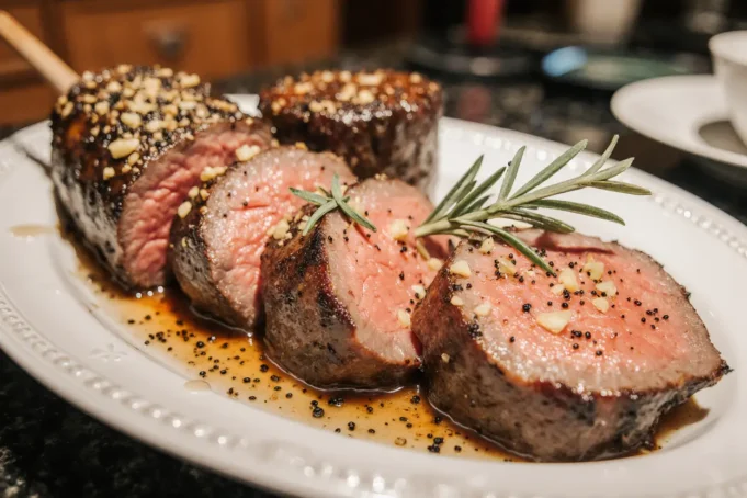 Q: Can I use this recipe for individual filet mignon steaks? A: Yes, with timing adjustments. Use the same seasoning approach, but sear filets 3-4 minutes per side in the hot pan, then transfer to a 400°F oven for 5-8 minutes depending on thickness and desired doneness. The smaller mass of individual steaks cooks much faster than a whole tenderloin, requiring vigilant monitoring to prevent overcooking.