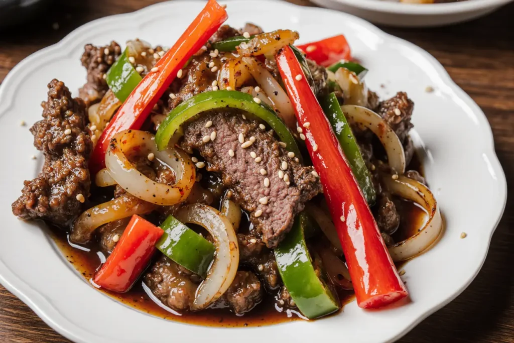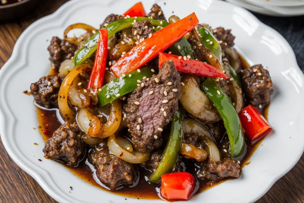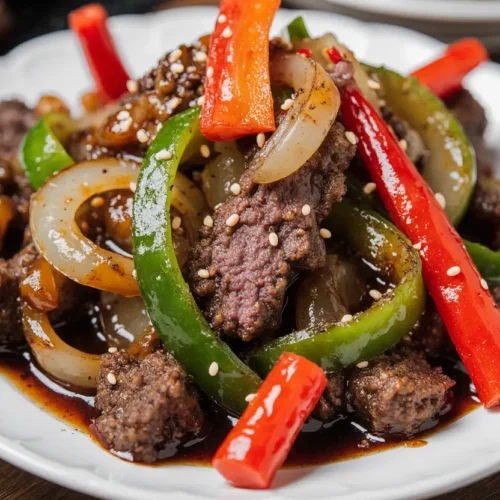 Transfer your sautéed beef and peppers to a warmed serving platter or individual plates. Scatter sliced green onions over the top for a pop of fresh color and mild onion flavor that contrasts beautifully with the rich sauce. Sprinkle sesame seeds for visual appeal and subtle nuttiness.