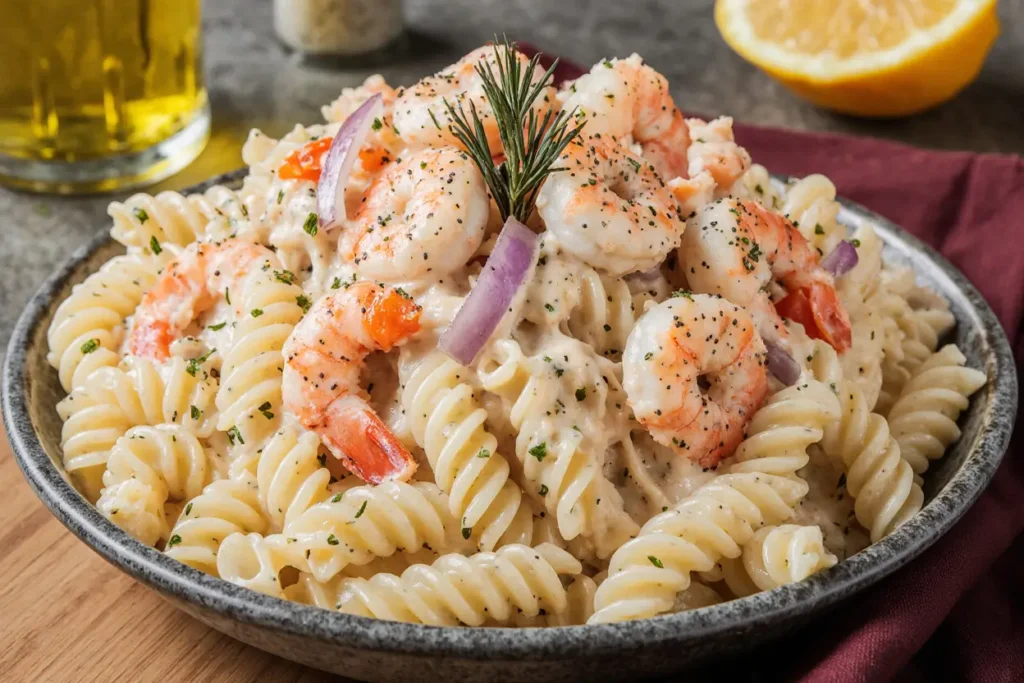 Key Nutritional Highlights: This seafood pasta provides exceptional protein quality, delivering all essential amino acids with high bioavailability. Shrimp contains selenium (54% DV per serving), supporting immune function and thyroid health. Crab contributes significant vitamin B12 (89% DV), crucial for nerve function and red blood cell formation. The combination provides omega-3 fatty acids that support heart health and cognitive function.