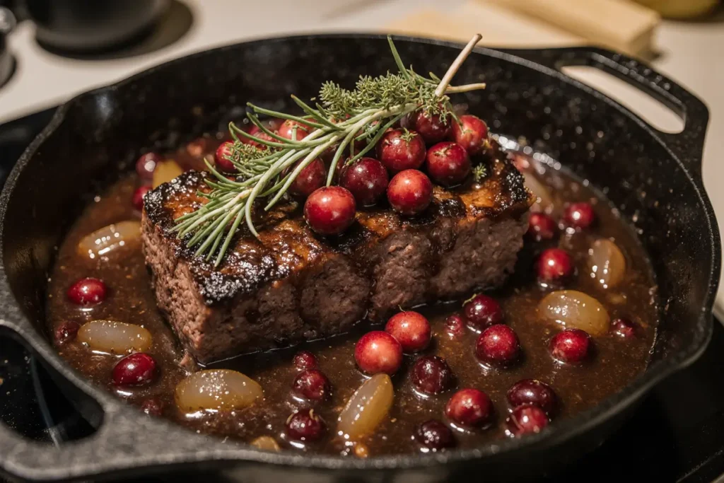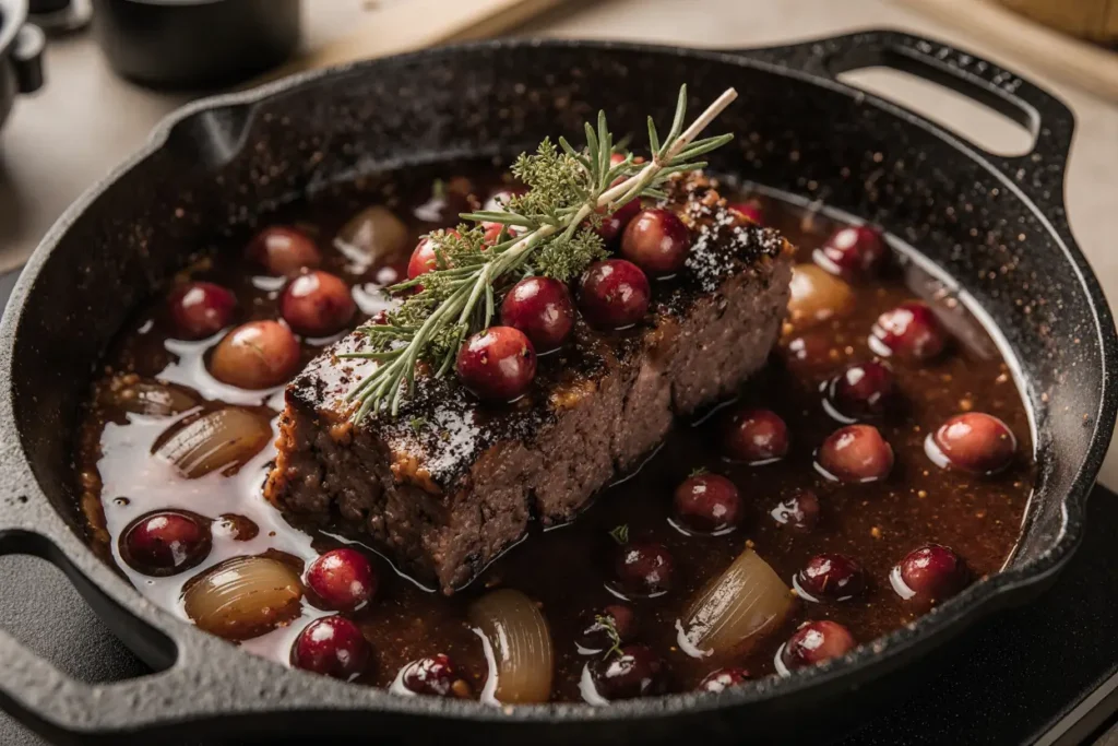 Pair with seasonal vegetables such as roasted root vegetables in fall, asparagus in spring, or grilled zucchini in summer to keep the dish feeling fresh year-round. Complement with a bold red wine such as Cabernet Sauvignon, Malbec, or Syrah—the wine’s tannins cut through the beef’s richness while the fruit notes harmonize with the cranberry glaze’s sweetness.