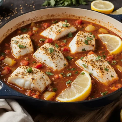 There’s something deeply comforting about a bowl of fish stew simmered gently with potatoes, tomatoes, olive oil, and warm spices. This Spanish Fish & Potato Stew (Caldereta-Style) is one of those timeless dishes that feels both humble and elegant—perfect for a cozy family dinner, yet impressive enough to serve guests. Rooted in Spanish coastal cooking, caldereta-style stews were traditionally prepared by fishermen using the day’s catch, slowly cooked in one pot and shared communally.