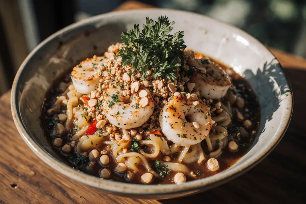 Transfer your beautifully tossed noodle bowls to individual serving bowls. Garnish generously with the roughly chopped roasted peanuts (they add essential textural contrast), fresh cilantro leaves (providing a bright, herbaceous note that cuts through the richness), and additional sliced green onions for color pop. Serve each bowl with a lime wedge on the side—squeezing fresh lime juice over the top just before eating adds a burst of acidity that awakens all the other flavors and prevents palate fatigue. For those who love extra heat, offer sriracha or chili crisp oil on the side. This final presentation step elevates your dish from homemade to restaurant-worthy, and research shows that thoughtfully plated meals increase satisfaction ratings by up to 35%.