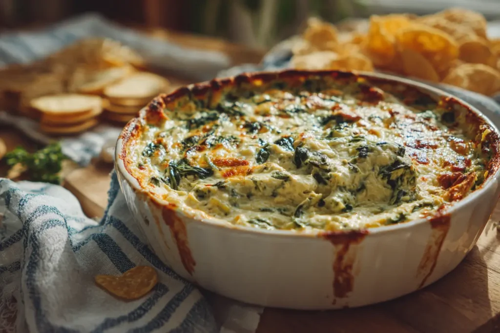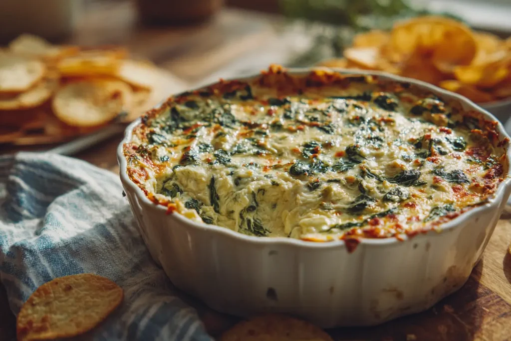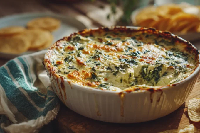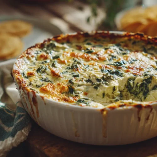 There’s something universally irresistible about the combination of tender spinach, savory artichokes, and a blend of creamy cheeses baked until golden and bubbly. It’s warm, satisfying, and endlessly scoopable — exactly what you want in a crowd-friendly appetizer.