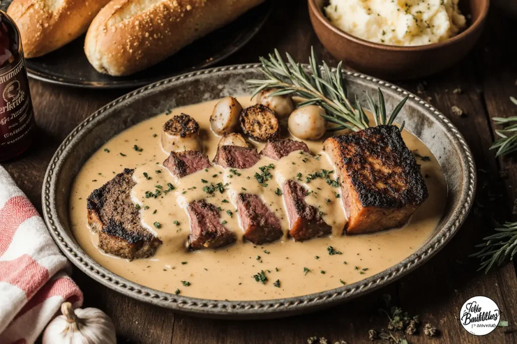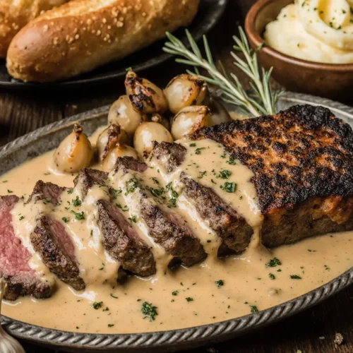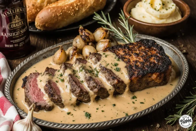 The beauty of this dish lies in its versatility—adapt it with healthier alternatives, pair it with your favorite sides, or scale it up for a crowd. Every element, from the timing to the resting period, contributes to the final result: tender, juicy steak coated in a glossy, complex sauce that captures the essence of bourbon’s warmth and garlic’s aromatic depth.