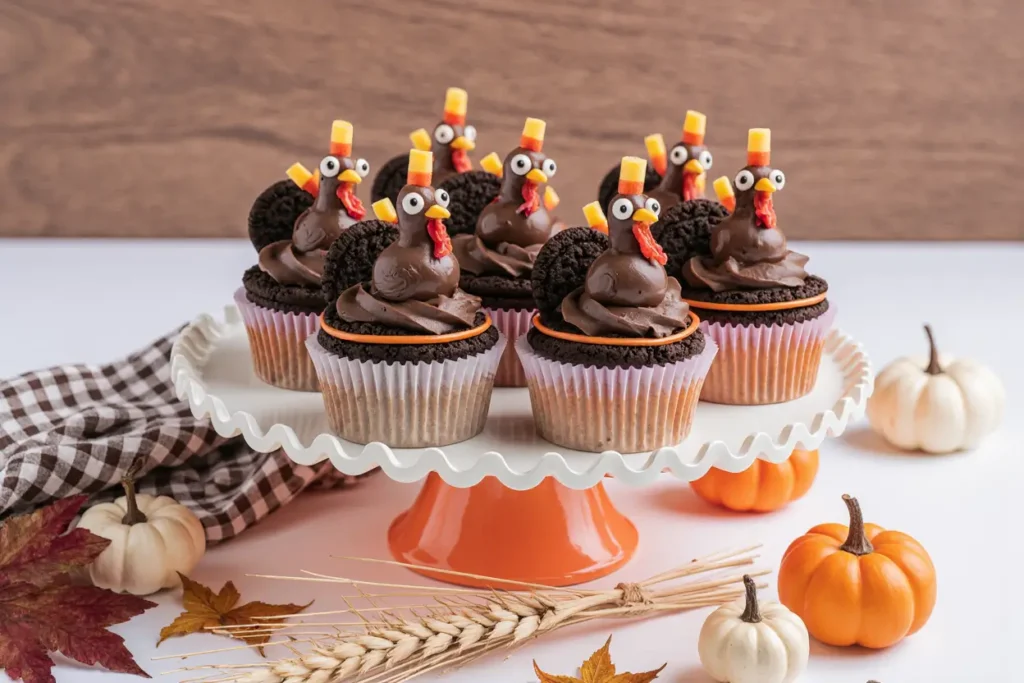 Maximize the impact of your super cute turkey cupcakes with these creative presentation ideas that match their charming description: