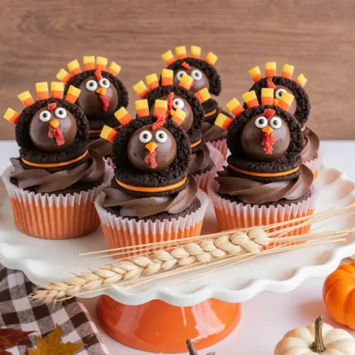 Q: Can these turkey cupcakes be made gluten-free or vegan? A: Absolutely! For gluten-free versions, substitute the all-purpose flour with a 1:1 gluten-free baking flour blend that contains xanthan gum—King Arthur and Bob’s Red Mill make excellent options. The description of texture remains nearly identical. For vegan turkey cupcakes, replace eggs with flax eggs (1 tablespoon ground flaxseed + 3 tablespoons water per egg, rested 5 minutes), use plant-based butter and milk, and choose vegan cookie alternatives like Newman-O’s. Verify that candy decorations are vegan-friendly, as some contain gelatin or confectioner’s glaze.