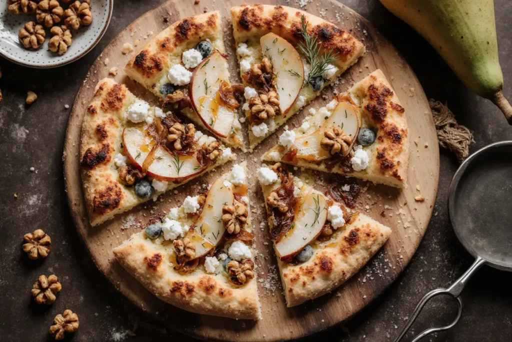 Yes! Use vegan pizza dough (most are naturally vegan), replace cheeses with cashew cream or vegan mozzarella alternatives, and substitute honey with maple syrup or agave nectar. The caramelized pears, walnuts, and balsamic glaze remain unchanged, ensuring you still achieve the complex flavor profile.