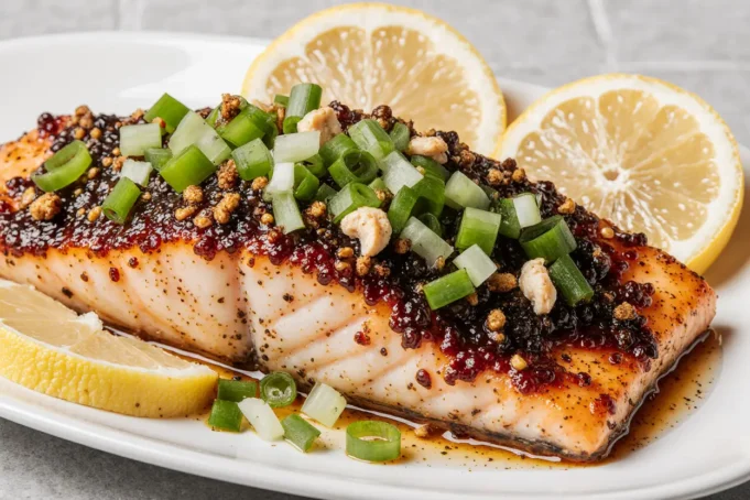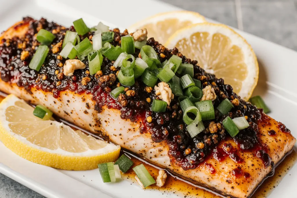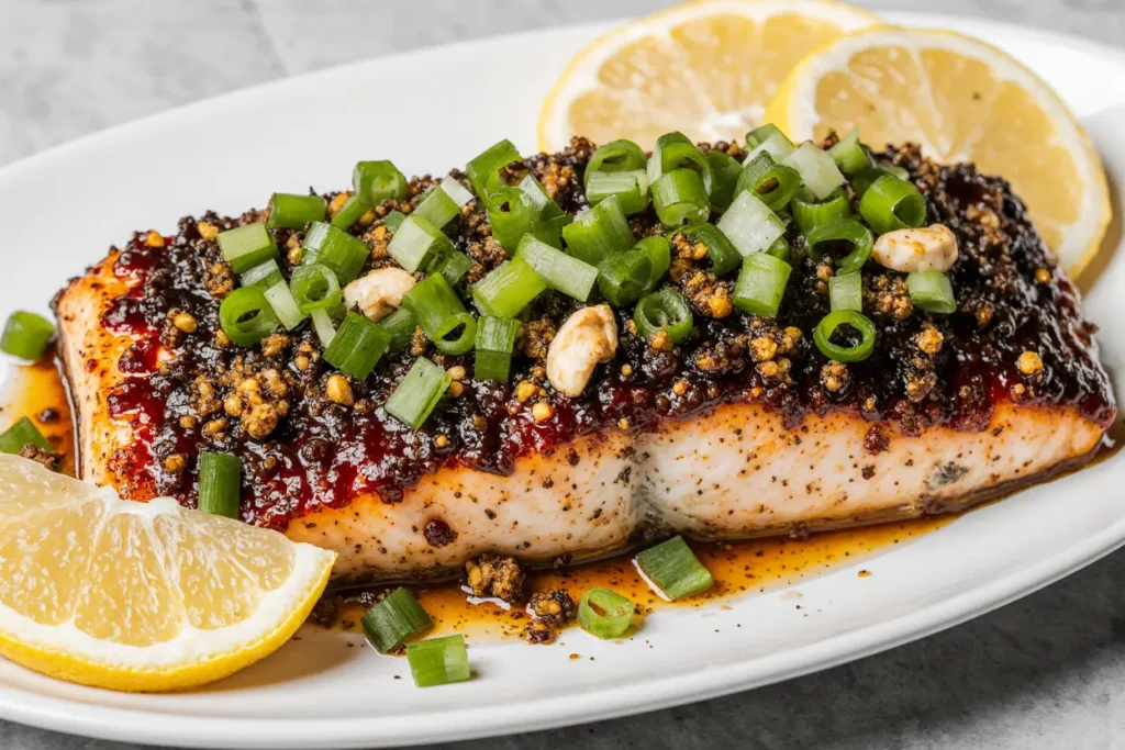 Asian Fusion Bowl: Serve over jasmine rice with steamed bok choy and edamame, creating a balanced meal that highlights the salmon’s bold flavors while providing complementary textures.