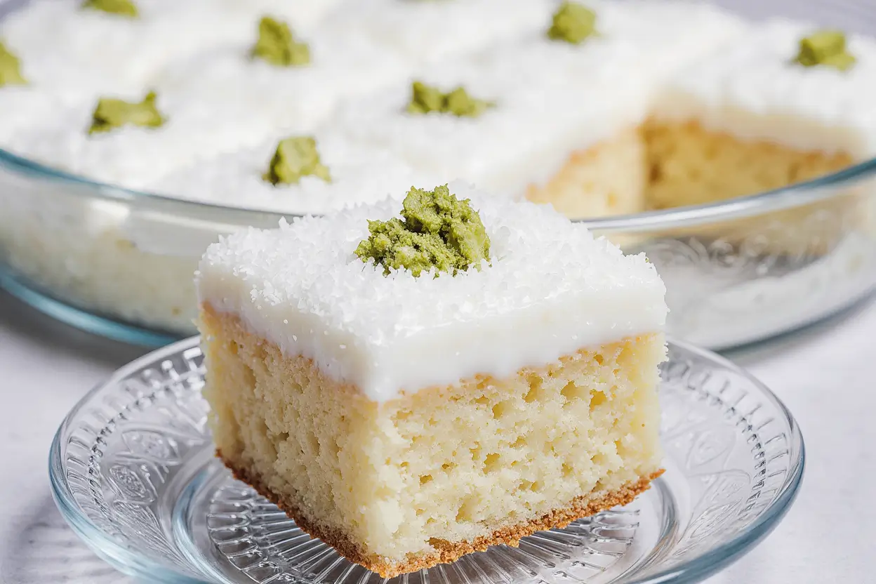 Pair with hot coffee, coconut milk lattes, or tropical fruit teas to complement the cake’s flavor profile. The beverage’s warmth brings out the aromatic coconut notes.